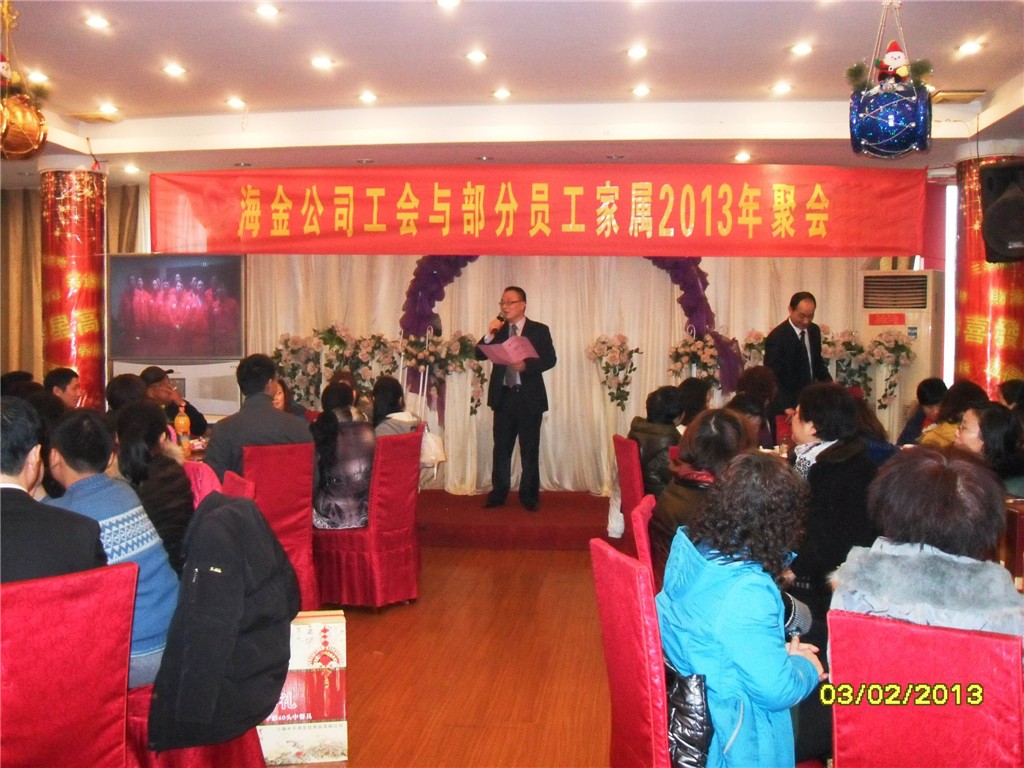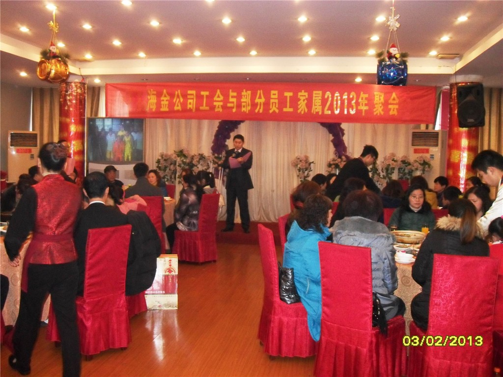 春節(jié)將至,2013年2月3日,海金公司工會(huì)組織了離公司較近的安徽合肥區(qū)域的部分員工家屬進(jìn)行聚會(huì),總公司領(lǐng)導(dǎo)及海金公司主要領(lǐng)導(dǎo)親臨聚會(huì)現(xiàn)場(chǎng),給所有員工及家屬拜個(gè)早年,同時(shí)帶去海外現(xiàn)場(chǎng)員工和公司領(lǐng)導(dǎo)的祝福和慰問,與員工家屬一起說說心里話、聊聊家常事,聚會(huì)在歡樂祥和的氣氛中進(jìn)行,最后,所有聚會(huì)人員共同舉杯,共祝公司所有員工身體健康、闔家幸福,祝愿海金公司來年蒸蒸日上、興旺發(fā)達(dá)。