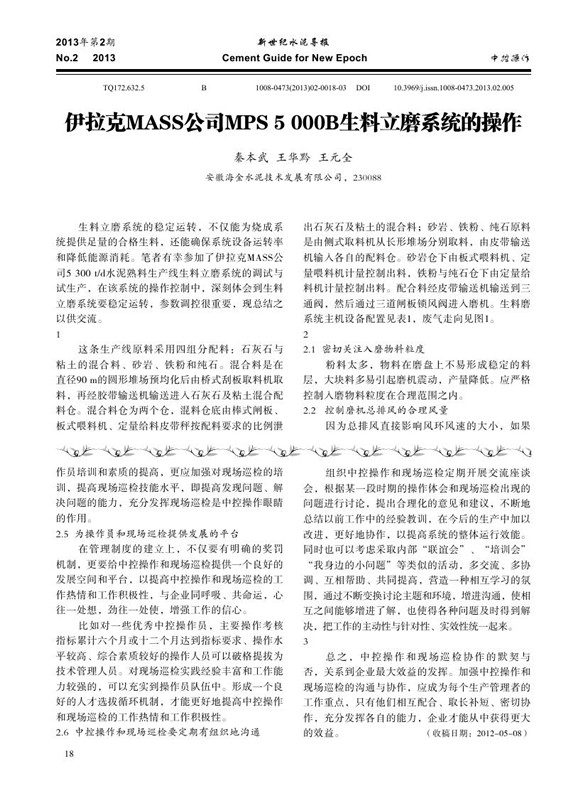 伊拉克MASS公司MPS 5000B生料立磨系統(tǒng)的操作