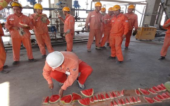 對高溫天氣,伊拉克SCP保產項目部領導采取了一系列的應對措施。領導后勤部門為現場送去了防暑降溫的綠豆湯、飲用水等飲品,防暑降溫藥品也準備充足,食堂調整飯菜品種,葷素合理搭配。同時,項目部組織相關部門開展“送清涼”活動,將西瓜、雪糕送到一線檢修員工的手中,叮囑檢修人員注意防暑降溫。細致的后勤保障、一片西瓜、一支雪糕讓一線員工們倍感清涼,增添了員工戰高溫、斗酷暑奪取勝利的信心和勇氣,確保了檢修任務的圓滿完成。