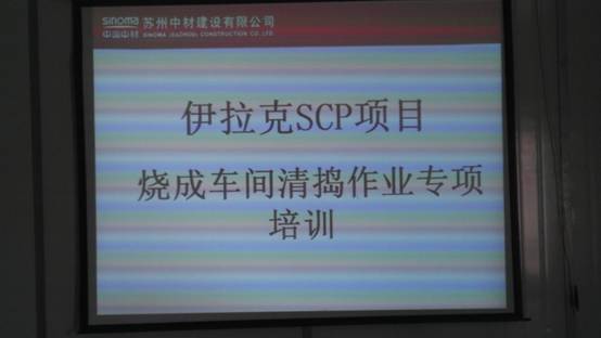 針對燒成車間作業的特點,2013年8月28日下午16:00、8月29日上午9:00,伊拉克項目部在伊拉克SCP項目培訓室舉辦了兩場清搗作業安全專項培訓會。